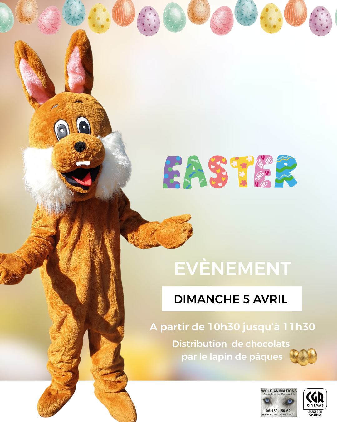 Le lapin de paques sera la pour une distribution de chocolat